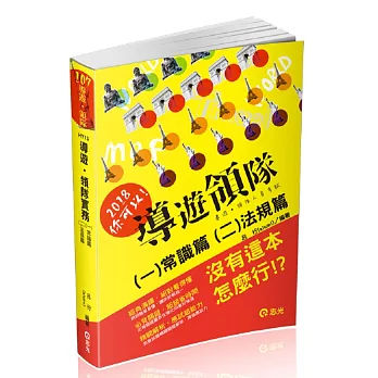 詳細資料ISBN:9789869533119 叢書系列:導遊領隊、會展人員 規格:平裝 / 536頁 / 19 X 25.6 X 2.4 CM / 普通級/ 雙色印刷 / 四版 出版地:台灣 內容簡介【2018年導遊領隊最有誠意獨創改版】 『有影沒?』全台首創!!! 第一本考試書中有影像說明 還在煩惱重點觀念及法條記不起來嗎? 這麼多的文字說明真的可以過目不忘嗎? 告訴你,『重點整理』加上『影片教學』→圖像記憶法完整吸收必考觀念 1.手機QR CODE一掃,就有老師講解重點說明!(也可打網址觀看歐!) 2.買書就像請家教到你家!→型男老師到你家 題目收錄超過400題→每題解析完整掌握題型 ◎本書內含:觀光資源與維護、臺灣原住民概論、臺灣歷史、臺灣地理、外國歷史、外國地理。 ◎依據考選部公佈命題大綱將歷屆考題依序分類,並統計出題比例,分出必考指數重要程度題醒,讓你精準唸對重點。 ◎精準破題,每題考題皆有考點分析,讓你一手掌握出題意涵。 ◎內含:應考須知、歷屆試題出題統計、必讀指數提醒、考點分析、試題出題意涵解說。本書特色 你想要 ※高收入? 2500(每日出差費)×5天×10%旅遊購物額外傭金=12500+額外收入 ※到處吃喝玩樂?北部看101,中部吃大學附近夜市特色小吃、南部陽光沙灘…… ※上班時間自己掌控? 你可自由選擇一個月帶幾天團,帶得多收入多,由你自己決定一個月上幾天班 1.本書內容主要將考試重點以表格方式呈現,並以星號顆數標註”必考指數”,讓讀者能輕鬆就看懂重點抓住命題趨勢 2.另ㄧ項特色為本書的試題解析,別於坊間僅將其試題答案及難題做論述,考用更貼心的是將該題於本書的出題章節頁數做標記,且將該題的『考題觀念』做說明,讓讀者能夠更清楚知道自己的錯題弱點並掌握出題意涵 |