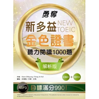 詳細資料ISBN:9789863180388 叢書系列:多益叢書 規格:平裝 / 728頁 / 16K/ 19 X 26 CM / 普通級/ 單色印刷 / 初版 出版地:台灣 內容簡介 挑戰1000題奪金必備題庫和詳細解析! 專為英文高手設計 精準解題策略 提升作答效率 升格金色證書 有如探囊取物! 1.英文高手必會的1000題紅利題庫和解析雙書版 不同的英文程度要有不同的準備策略。本書適合目標分數設在800~990高分的考生,集嚴選頻出考題與詳細解析兩部分於一書,讓您大量演練考題之餘,更可參照詳解訂正檢討,模擬考與複習一書搞定。幫助身為高手的您準備事半功倍,是摘下金色證書必備的高效精華題庫和解析。 2.挑戰各題型的高分戰略 本書收錄各題型應考的高分戰略,詳細剖析各類題型的出法,提醒可能的試題陷阱與答題訣竅。讓您快速掌握解題技巧,題目只看重點毫不浪費時間,提高答題速度。知己知彼,百戰百勝! 3.挑戰各題型的高分戰略 本書收錄各題型應考的高分戰略,詳細剖析各類題型的出法,提醒可能的試題陷阱與答題訣竅。讓您快速掌握解題技巧,題目只看重點毫不浪費時間,提高答題速度。知己知彼,百戰百勝! 4.奪下金色證書必備的「高分要點」與「陷阱破解」 高分要點:英文不能只靠死記硬背,高分要點幫您有條理地整理內容相似的單字片語和文法要訣,用最短時間助您融會貫通,舉一反三,不費吹灰之力地掌握變化多端的英文考題。