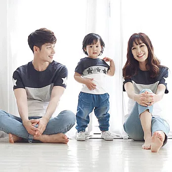 韓版星星圓領衫短袖上衣親子裝(小孩)80米白(#2) 售價:220