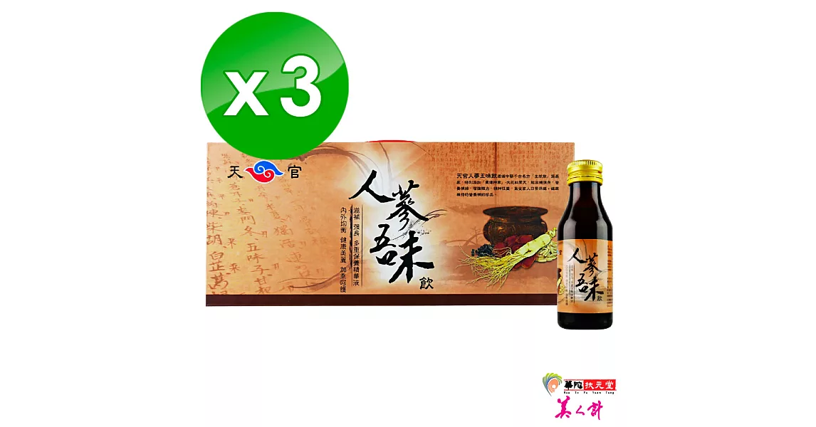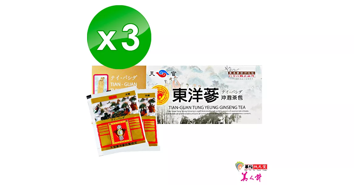 產品說明 商品簡介使用方式 品 名:天官原粹蔘茶5盒(30包/盒)成 分:乳糖、人蔘萃取液、人蔘萃取粉、黃耆萃取物內 容 量:30包入(每包:3公克±5%)食用方法:每曰2次,每次1包,沖泡於150-200C.C.溫水中飲用,長期飲用可調節生理機能,增強體力,精神旺盛保存方式:請置於陰涼乾燥處,避免陽光直射保存期限:2年有效日期:見標示(年/月/日)原 產 地:台灣產品內容物與規格說明 品 名:天官原粹蔘茶5盒(30包/盒)成 分:乳糖、人蔘萃取液、人蔘萃取粉、黃耆萃取物內 容 量:30包入(每包:3公克±5%)食用方法:每曰2次,每次1包,沖泡於150-200C.C.溫水中飲用,長期飲用可調節生理機能,增強體力,精神旺盛保存方式:請置於陰涼乾燥處,避免陽光直射保存期限:2年有效日期:見標示(年/月/日)原 產 地:台灣產地:台灣 |